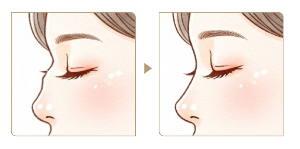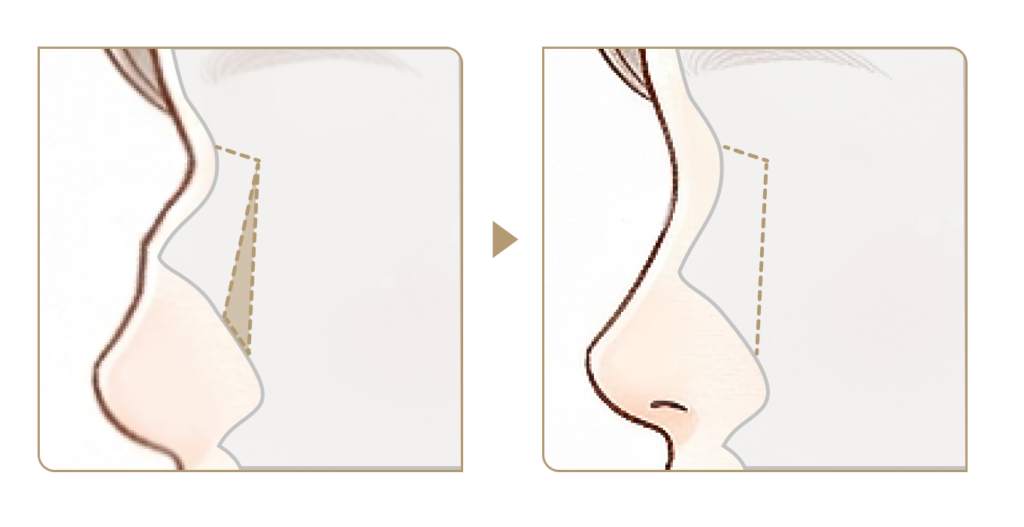 鷲鼻(ハンプ)手術(ハンプ)手術は、鼻骨と軟骨が接合する部分の突出(ハンプ)を削ることで、アーチ状に目立つ鼻筋を整え、滑らかでバランスの取れた美しいラインへと仕上げる手術です。
